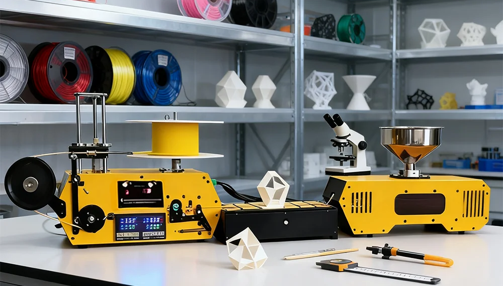Produção de filamento para impressão 3D utilizando diferentes tipos de materiais, desde materiais reciclados a materiais de elevada performance.